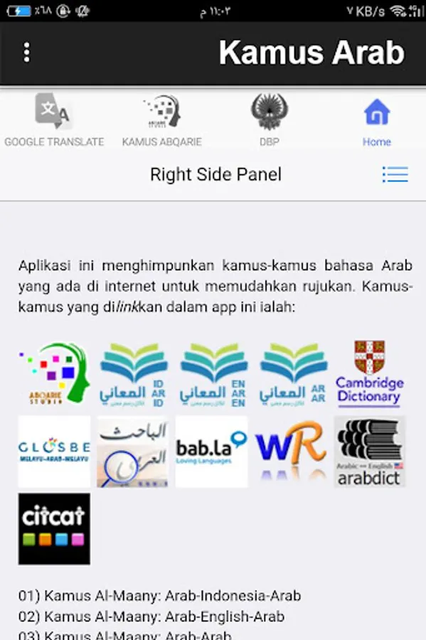 This Arabic Dictionary app brings Arabic dictionaries available on the internet for easy reference. Putting a list of well-known dictionary sites in one place can save time and simplify work. Dictionaries that are linked in this Arabic Dictionary app are: