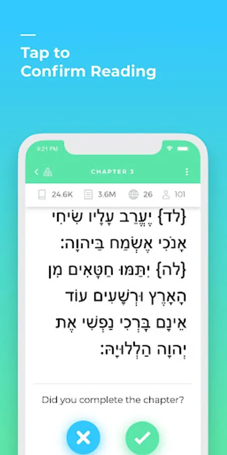> Real-time stats showing chapters read, books completed, people reading and countries reading תהילים.