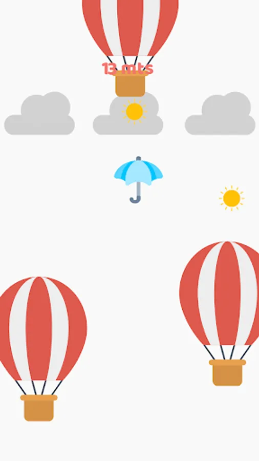 In this game you control an umbrella that travels and does not stop climbing, you must go as far as you can, against the rain, the wind, the city, airships, airplanes, trees, balloons and other objects that you find in the path. 💨🌪⛈