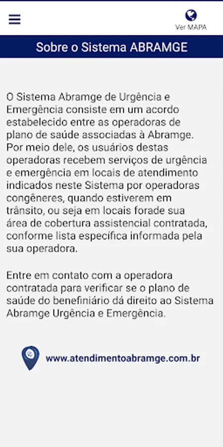 The Abramge Urgency and Emergency System consists of an agreement established between the health plan operators associated with Abramge. Through it, users of these operators receive urgent and emergency services at service locations indicated in this System by similar operators, when they are in transit, that is, in places outside their contracted service coverage area, according to a specific list informed by their operator. .