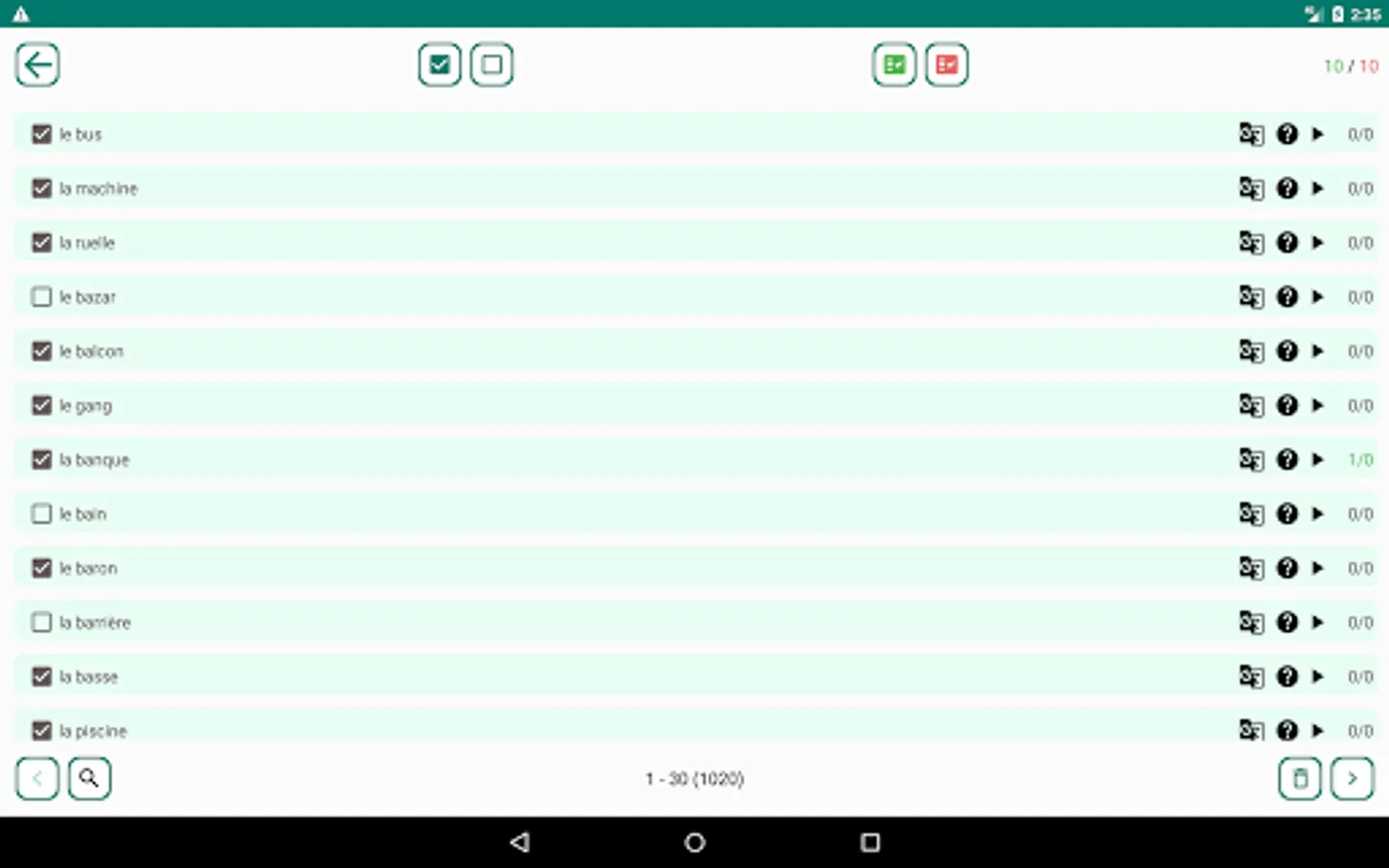 With this program you can easily learn 1500 French words with the articles Le/La, Un/Une and translation.