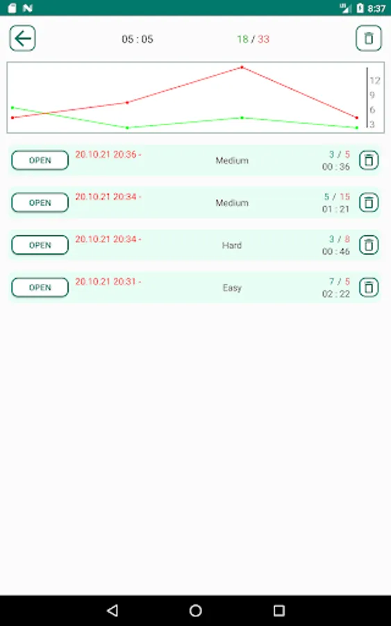 Sudoku keeps the history of all games. You can finish the game at any time.