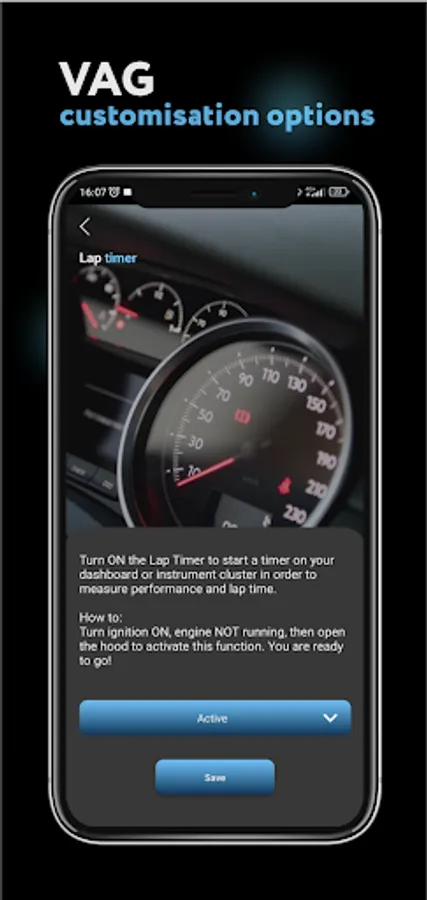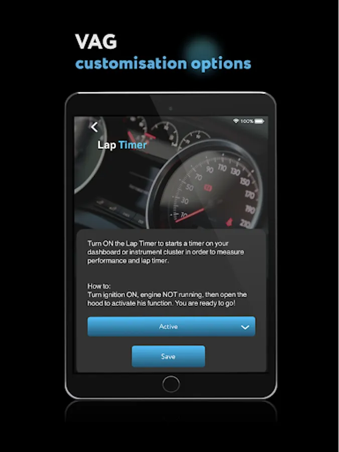 • Enable needle sweep and lap time on the instrument cluster and HUD