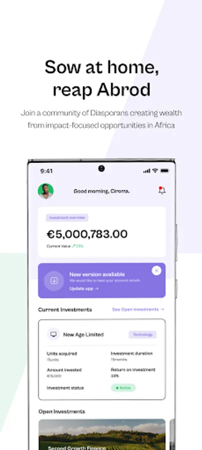 Abrod lets you access market-leading impact opportunities while driving positive, economic, and social development in emerging economies. We are bringing together a community of Africans, living abroad, and keen on creating wealth back home. Become a native and unlock unlimited horizons.