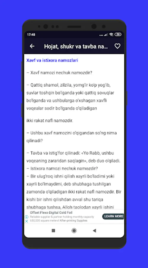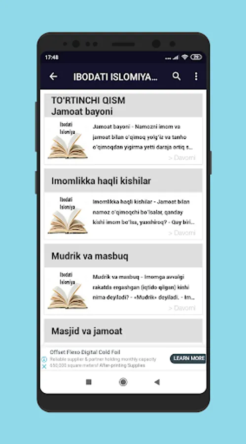 Ibodati islomiya kitobi 5 qsimdan iborat.