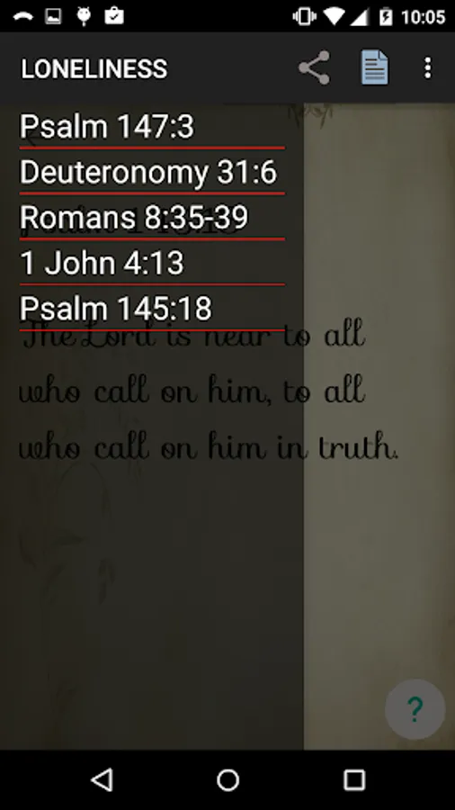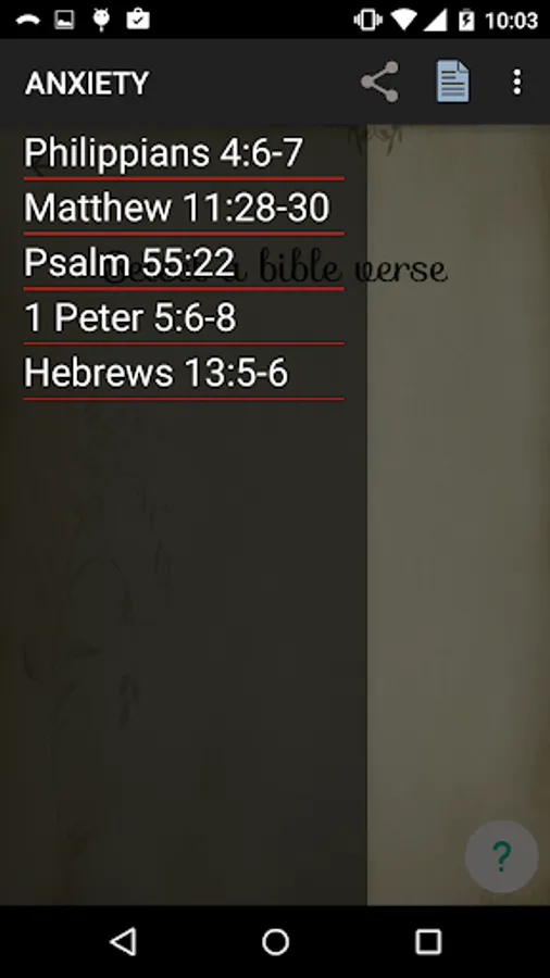 -The **BattleVerse** Feature that is loaded with multiple bible verses (well over a 100) each grouped according to the challenge they counter. Users can simply select a challenge and then view a bible verse to counter that. They may also easily share such verses with other believers, friends,family to encourage each other, provide guidance and clarity.