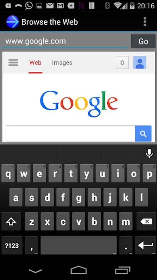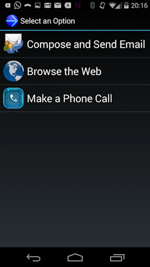 This app provides centralized access to 3 fundamental tasks of mobile users: sending email, browsing the web and making phone calls. For a lot of users the gmail app compose page can be hard to find. Fortunately this app takes you directly into our custom compose page before transferring you to gmail or whatever email app you have on your device. It also includes a lightweight browser and an option to make phone calls.