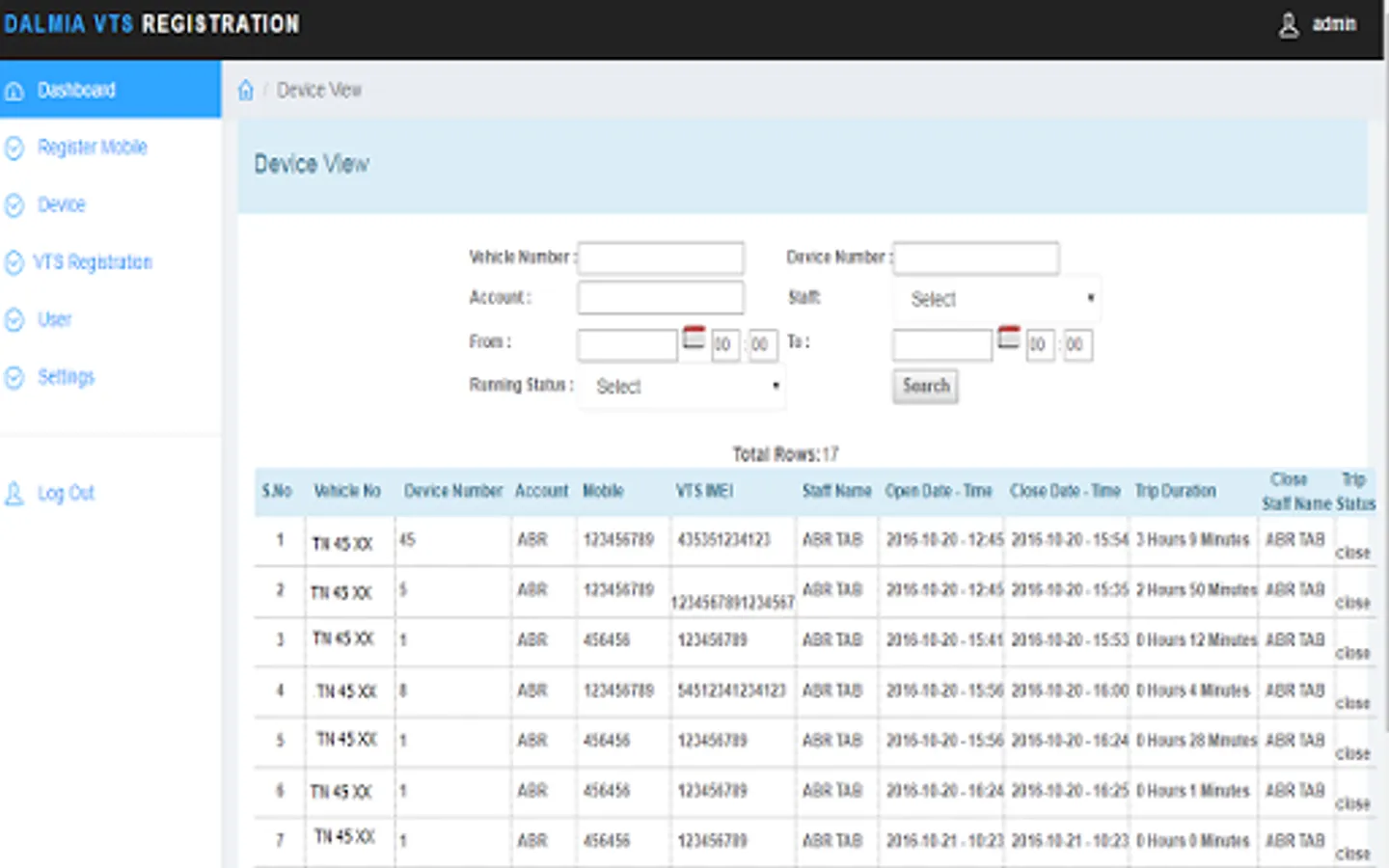 - Vehicle No