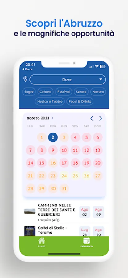 Whether you are a local resident or a visiting tourist, this app will provide you with a wide range of events, shows, cultural events, festivals, fairs, concerts and much more, distributed throughout the Abruzzo region. With a huge selection of events to suit all ages and tastes, you're sure to find something special for you.