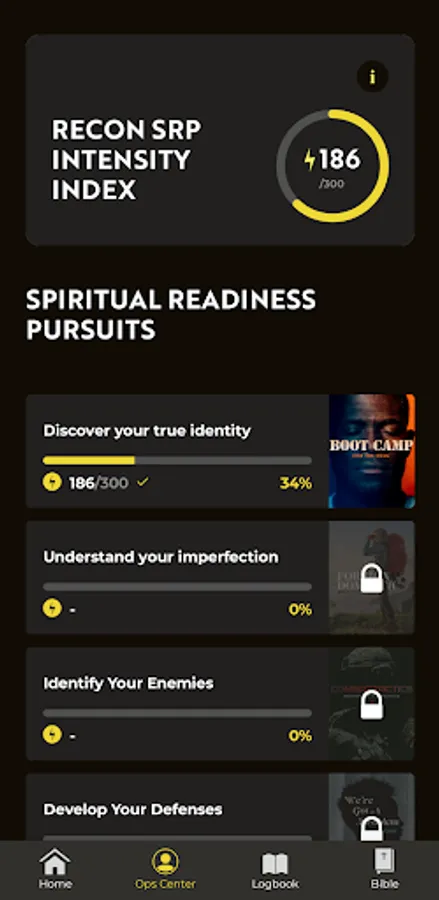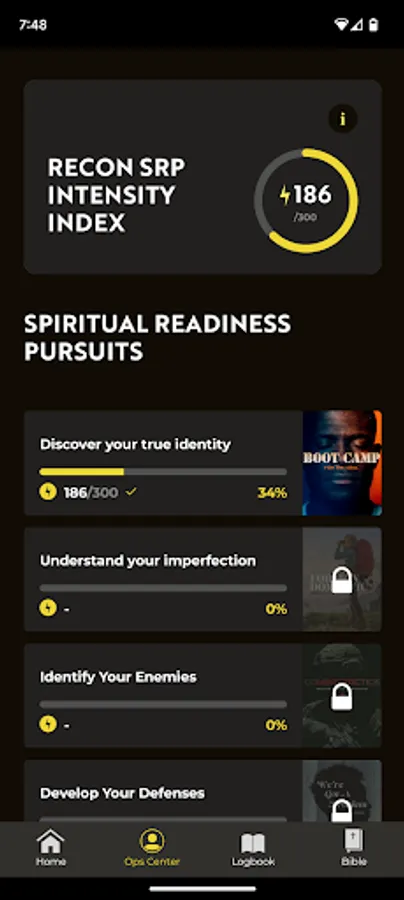 By combining cutting-edge technologies with meaningful content, we overcome common obstacles to Scripture engagement--making Operation: RECON not just an app, but an immersive faith experience that can be accessed any time, right from their phone. Our modern user dashboard displays your progress, providing the motivation needed to engage consistently. The experience is customizable, allowing you to dive into God's Word at your own pace.