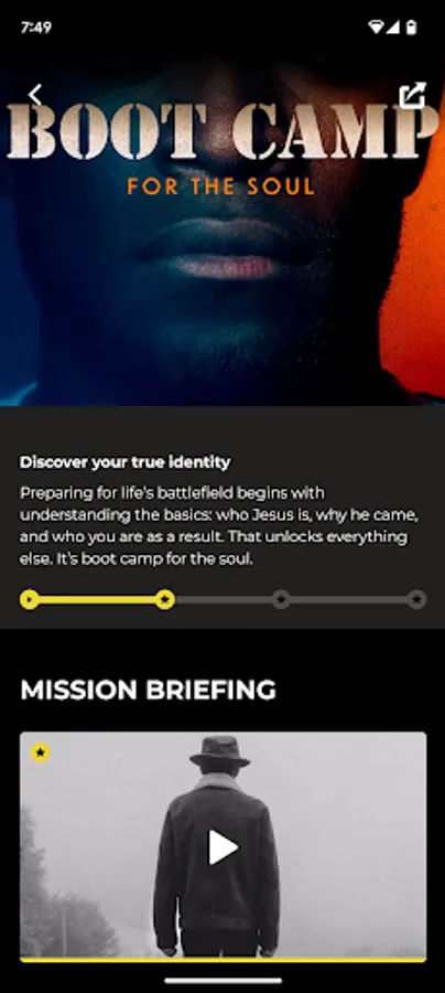 Masterclass-like in approach, our on-demand Bible curriculum is guided by credible Veterans who share insights, making the scriptures more accessible and relatable. Through captivating visual storytelling, we provide a Netflix-like bingeable experience that keeps users engaged and encourages continuous learning. The experience is further enhanced by an interactive, Peloton-like user portal where you can track your progress, engage with the virtual community, and grow in your faith journey.