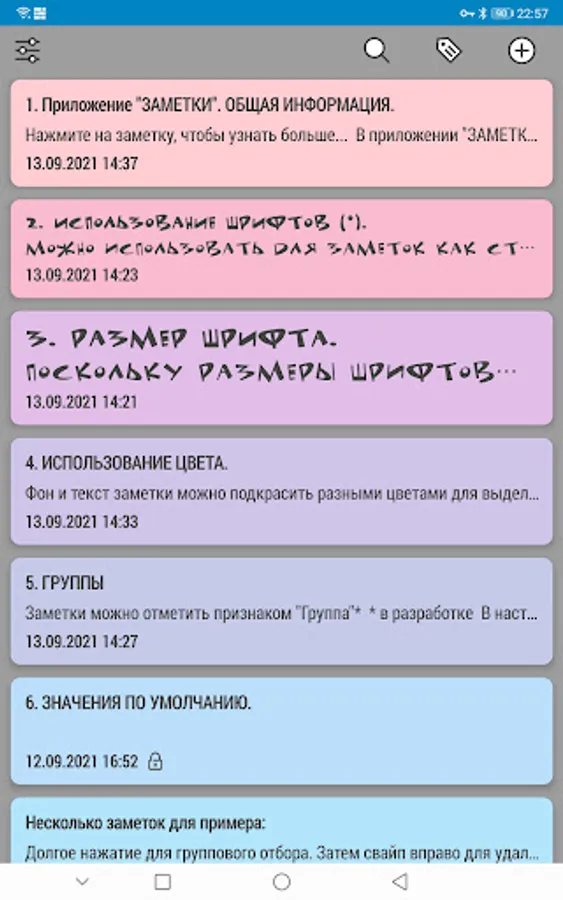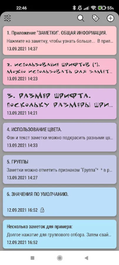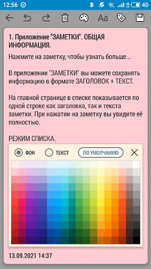 - выбор шрифта для текста заметки
