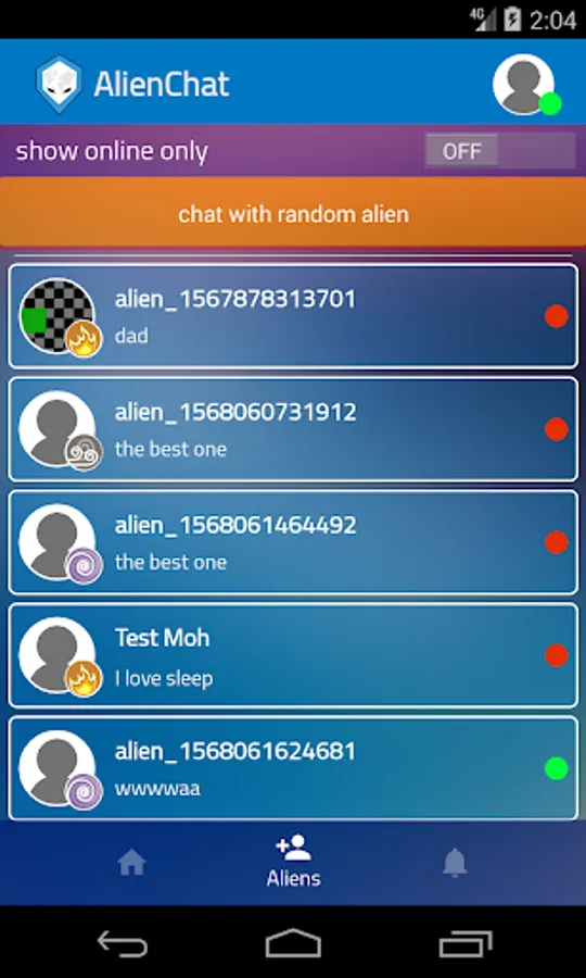you can talk with aliens have the same your personality by using anonymous identity and freedom in talking of subjects.