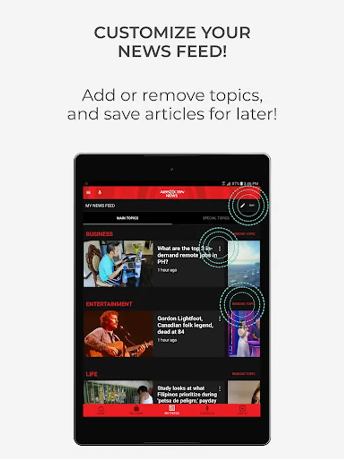 Keep up with the latest news and top stories in politics, entertainment, world news, weather, and more with this all-new app — for Filipinos worldwide!