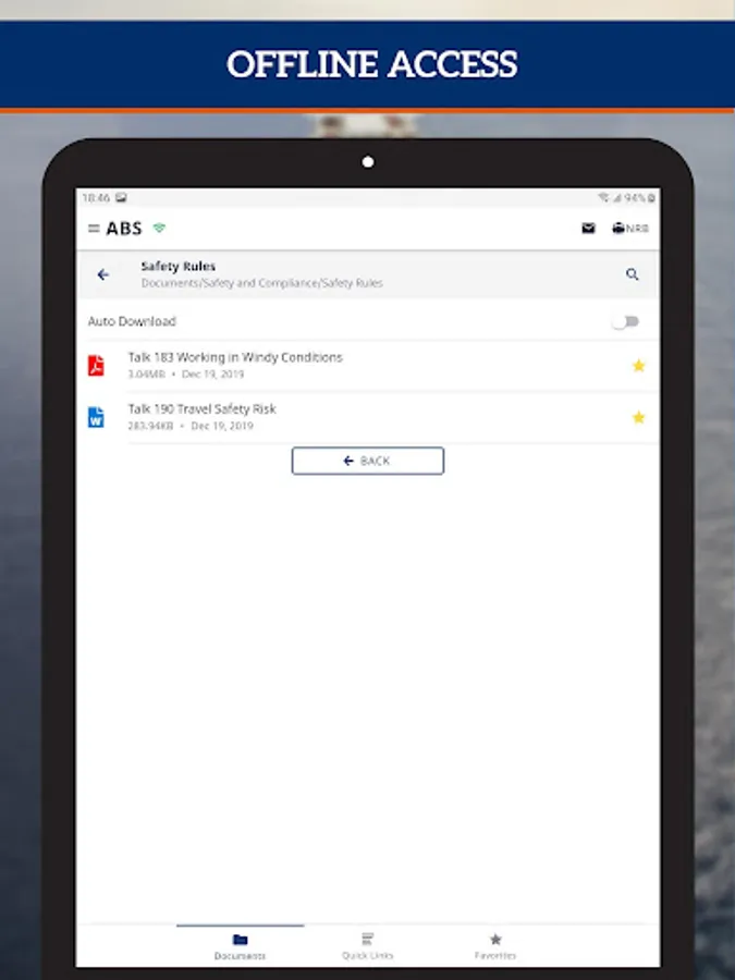 Access your company documents with ease using the ABS Nautical Systems Docs mobile app. The App enables onboard and office mobile users quick and easy access to company-controlled documents when away from their computer.