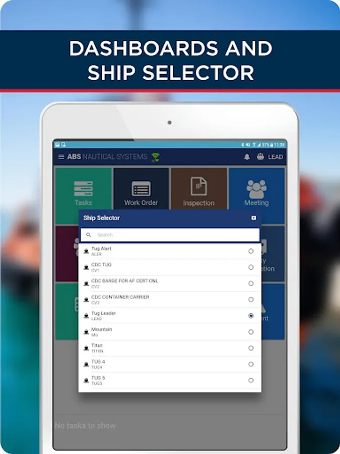NS Vessel Mobile app functionality is available through an ABS Nautical Systems Enterprise subscription software license.