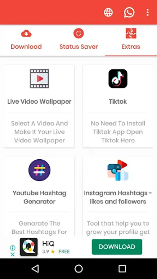 • Social media downloader app that lets you save videos from Facebook, Instagram, WhatsApp, Twitter, TikTok etc