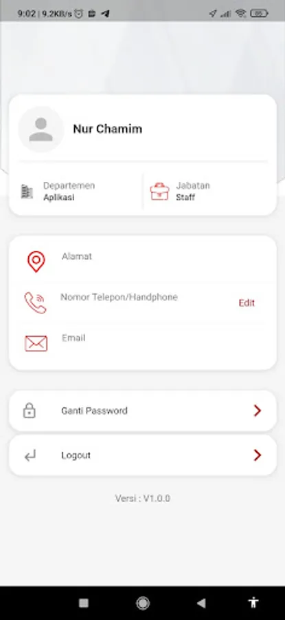 This application is an application that is used for the attendance of each employee. In addition to attendance, there are other features such as applying for permits, overtime, activities and hereafter projects