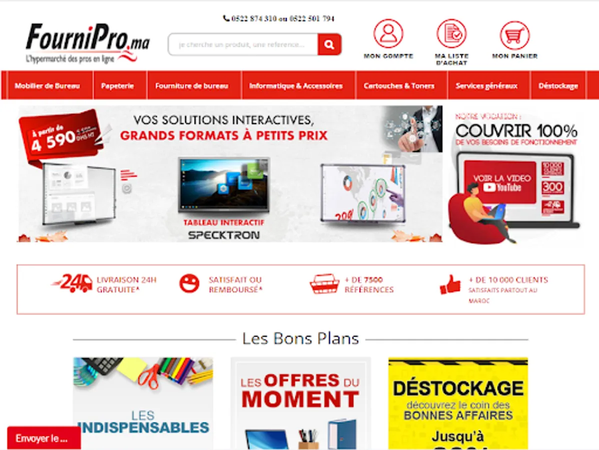 To be closer to its customers, Fournipro.ma provides them with a merchant site with an online catalog of more than 400 brands and 6000 references.