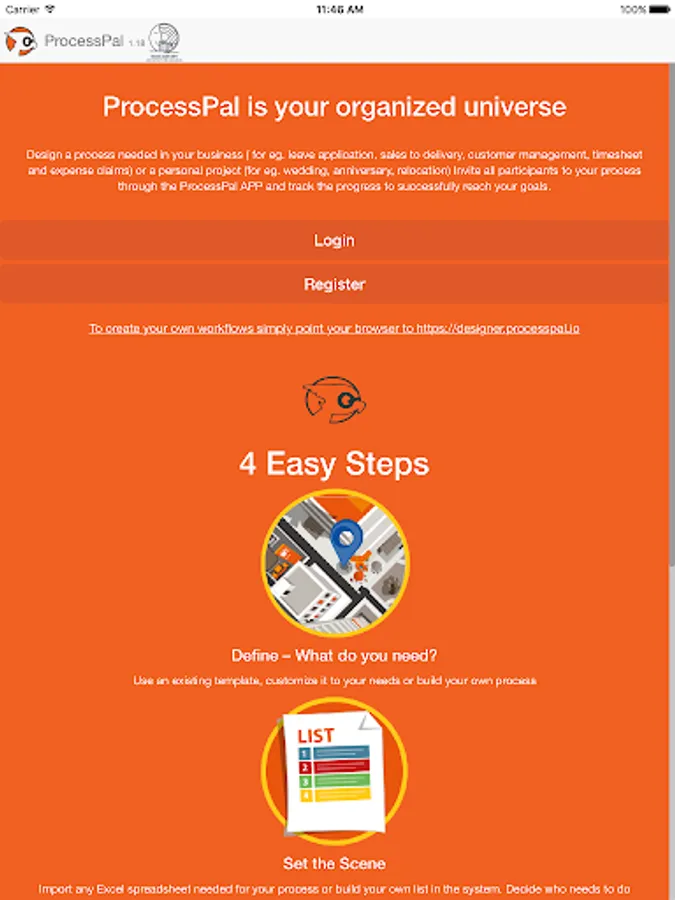 Design a process needed in your business ( for eg. leave application, sales to delivery, customer management, timesheet and expense claims) or a personal project (for eg. wedding, anniversary, relocation) Invite all participants to your process through the ProcessPal APP and track the progress to successfully reach your goals.