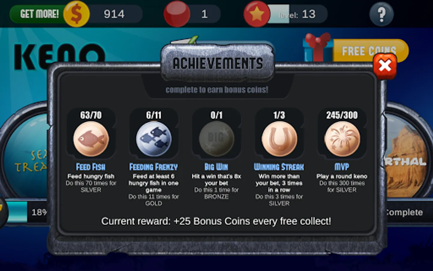 It's KENO time! Play one of the best FREE Keno games on Android! Keno by Absolute Games is free to play with lots of bonuses and coins. Find out how lucky you are playing Keno anywhere you want as the game can be played offline with no internet connection.