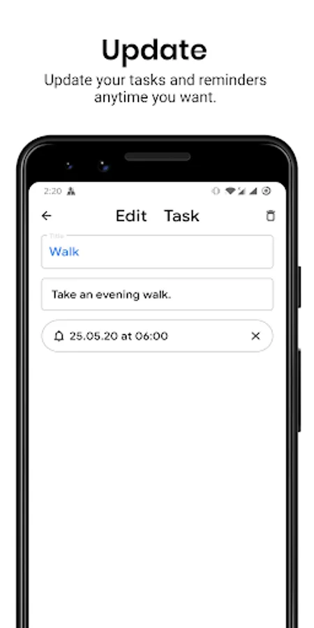 • Manage tasks created and update them anytime just by selecting that tasks.