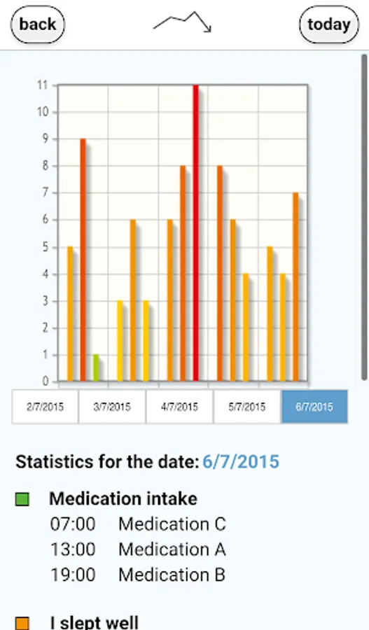An outstanding feature of the app is that it is so easy to use. With just one click, you can call up a graph showing the course of your pain and export it if you wish. This documentation can help when you are discussing the pain with your doctor.