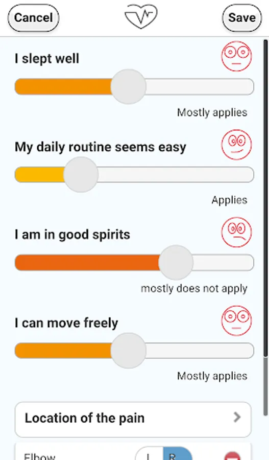 - Dynamic entry of your pain intensity