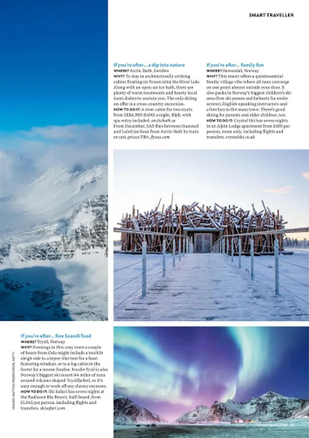 Smart Traveller: Weekend trips, chefs' picks, new openings, family breaks and more Destinations: Adventures to inspire your next trip Urban features: Innovative hotels, gastronomy hotspots and city guides Reports: Tackling experiences from volunteering and rail travel to food allergies Travel Geeks: Ask the experts, hot topics, tech-savvy travel and photography tips