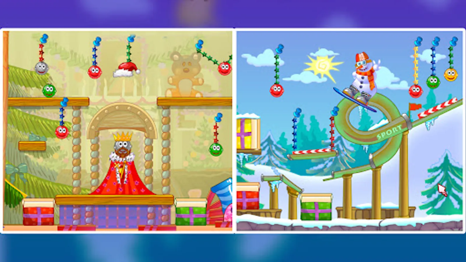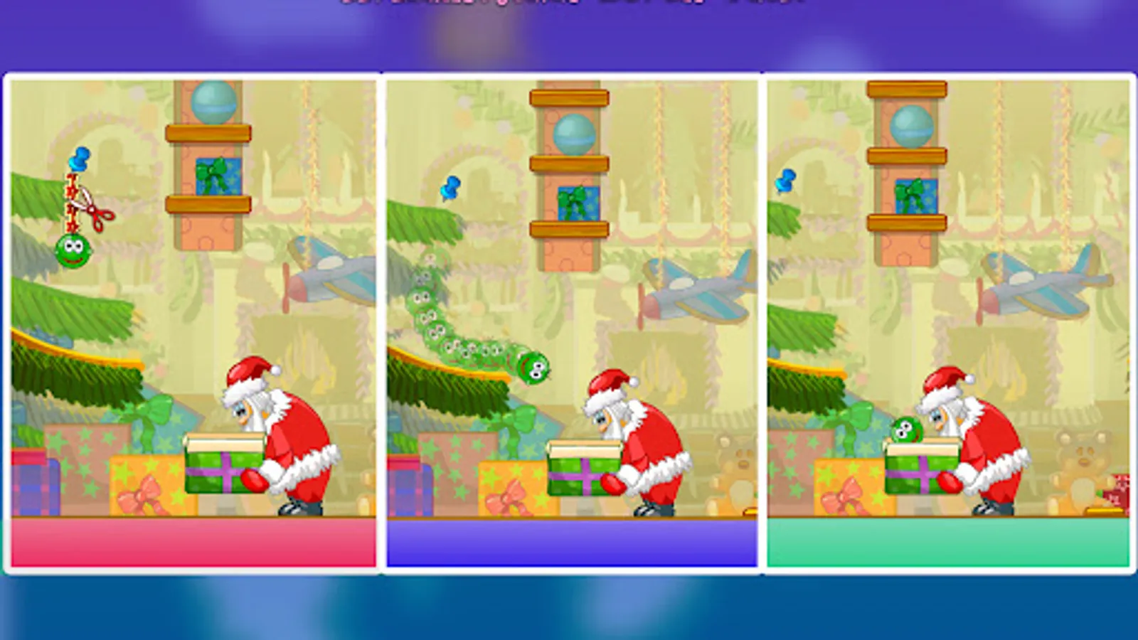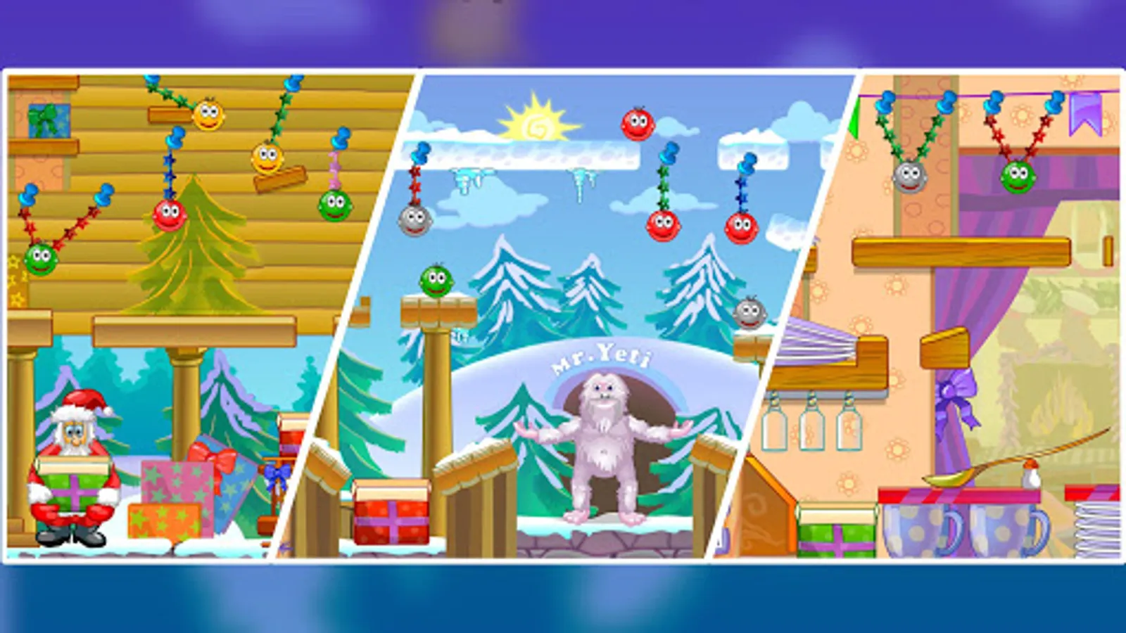 Help Santa Claus collect his holiday baubles in his boxes. Use your magical scissors to cut the rope just in time! Avoid grey balls trapping in boxes - otherwise you fail the level. Also, take a note that Santa wants to collect balls of the same color in the boxes of the same color!