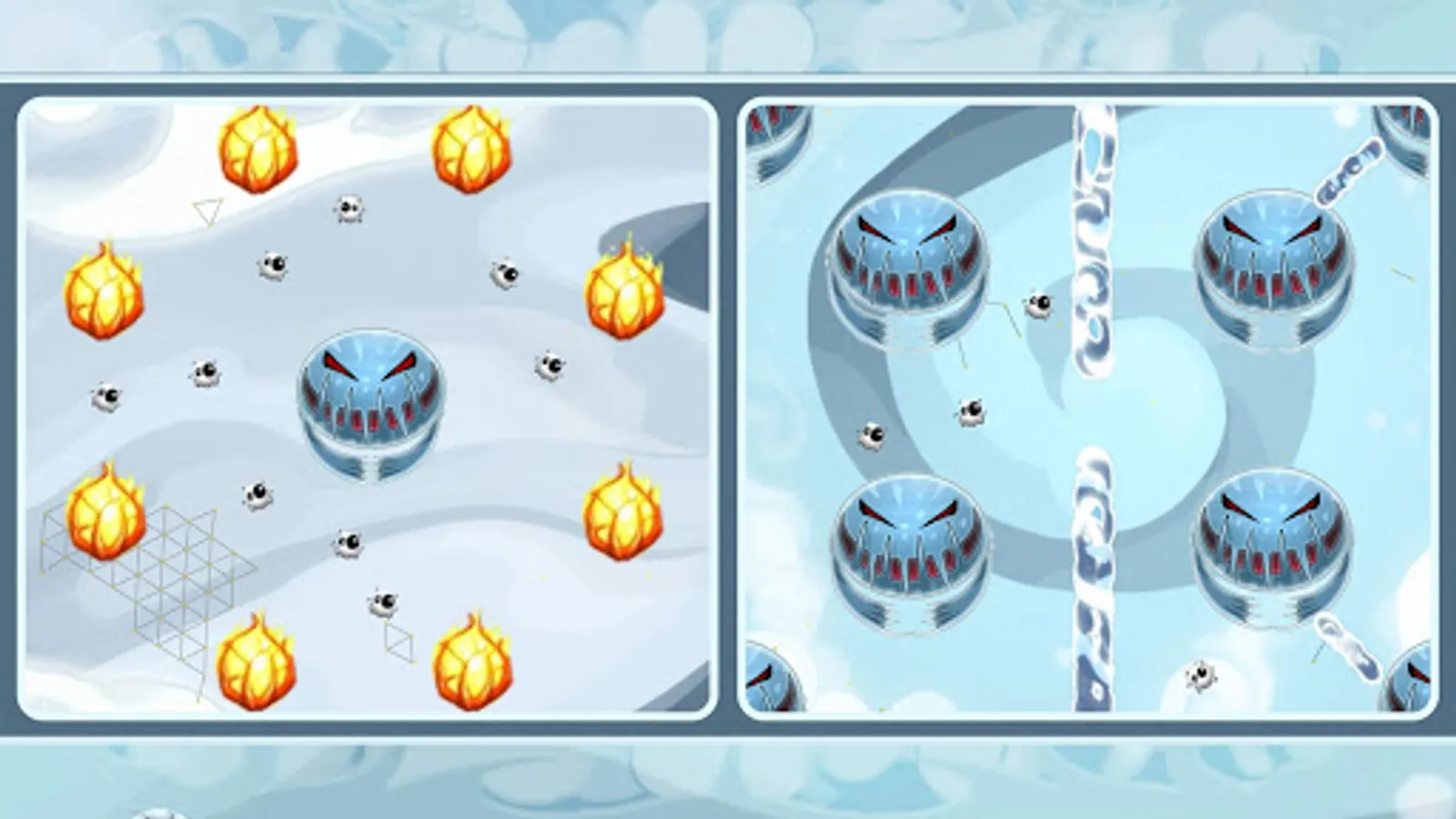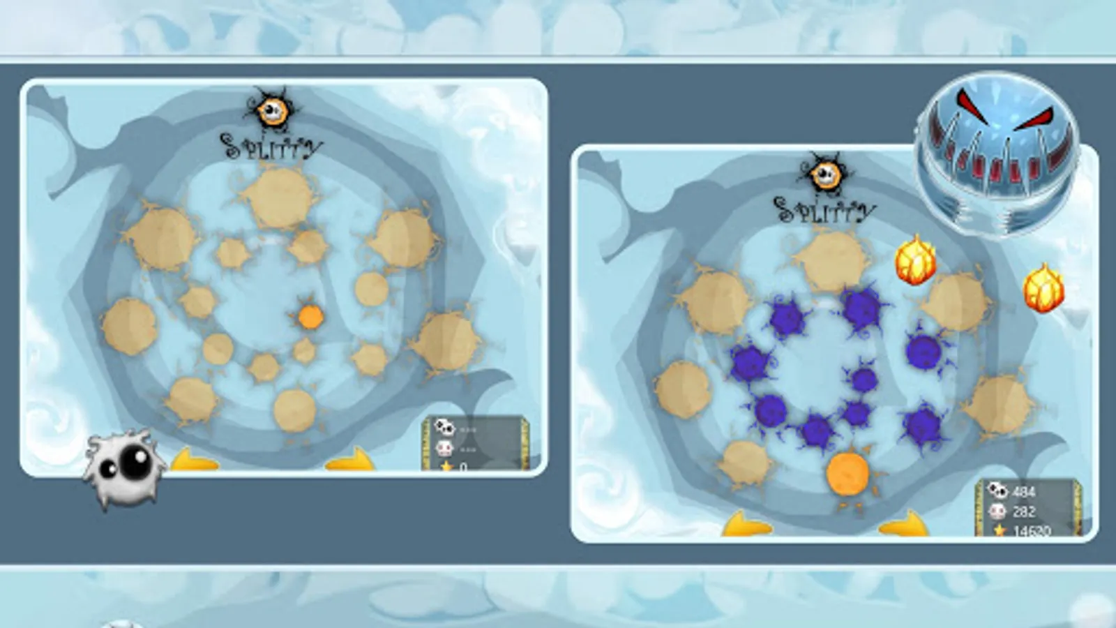Get a sneak peek into the tiny world and witness evolution in this free skill-puzzle game. Your goal is to collect all flame buds on board. Tap the screen to make the cell split. Do it more than once until you reach the limit. Play your role in the survival game. No matter how many characters may fall victim to the toothy monsters – you win when you all flowers are picked. As in many casual shooting games, the orbs will ricochete the walls. Be sure to use this advantage to hit all targets. If you are not fast enough to solve physics-based puzzles with timer, don’t hesitate to disable it.