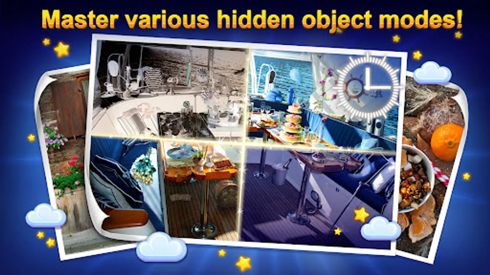 In this free hidden object game you are to find items in the picture against the clock. All hidden locations are colorful HD photos. Created by HOG fans, this free mobile game offers both fun pastime and challenge to search and find games addicts. All items on the hidden scenes change their position whenever you replay them. Various anomalies, e.g. Night mode, add special zest to the item search gameplay. New levels are added every day and are free to play for a week or as long as you want them!