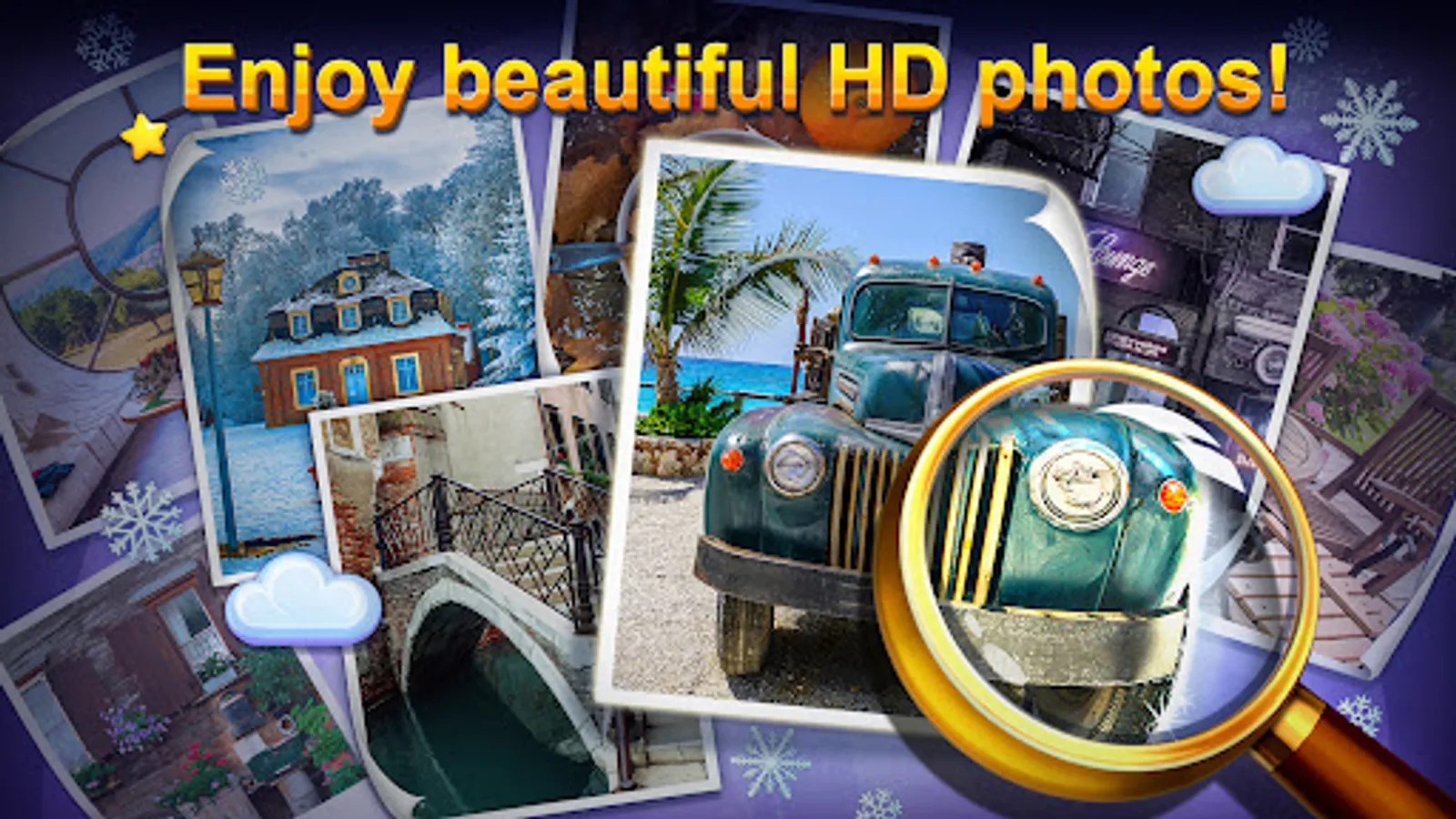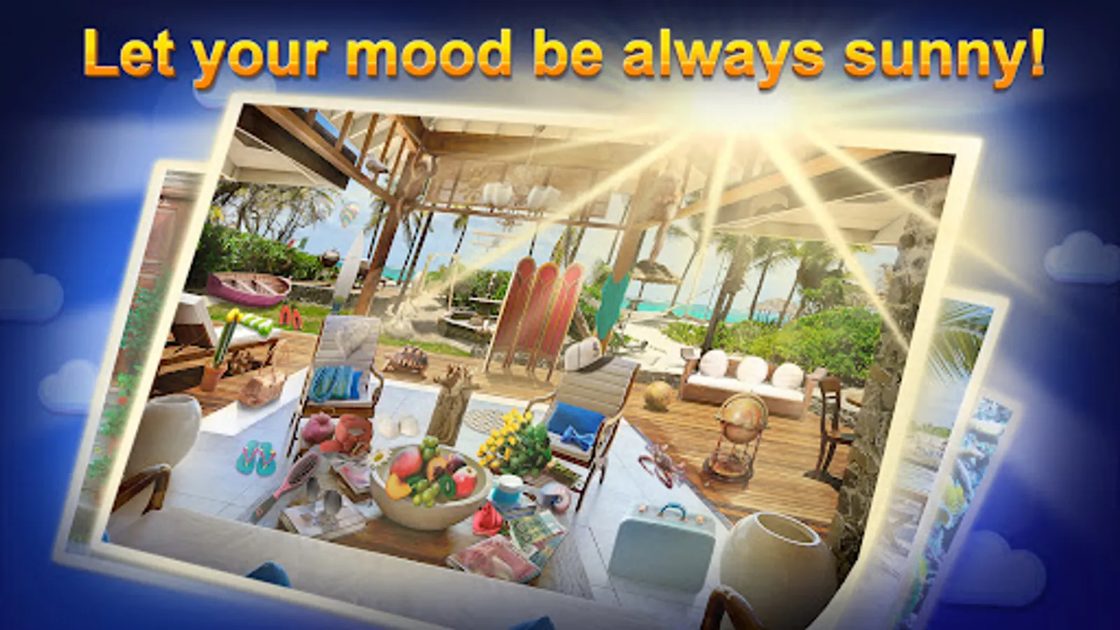 While free hidden levels are unlocked, older find-it scenes freeze, but purchased levels stay with you forever. Instead of downloading holiday games just replay themed hidden object locations to create festive mood. Along with finding objects you collect curious facts and brainy quotes about travelling, sports, business and love. So, every day you change your weather forecast and let the sun shine upon you!