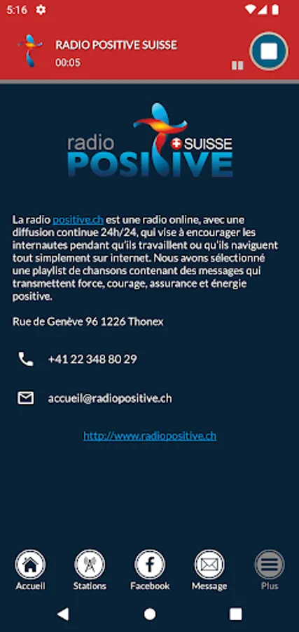 The positive.ch Radio is an online radio with streaming 24/24, which encourages Internet users while working or simply surfing the internet. We selected a playlist of songs with messages that convey strength, courage, confidence and positive energy.