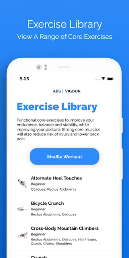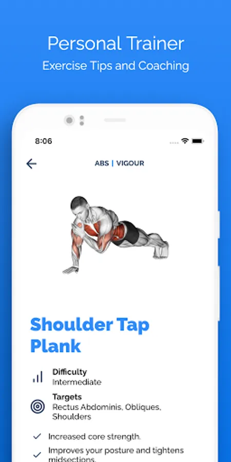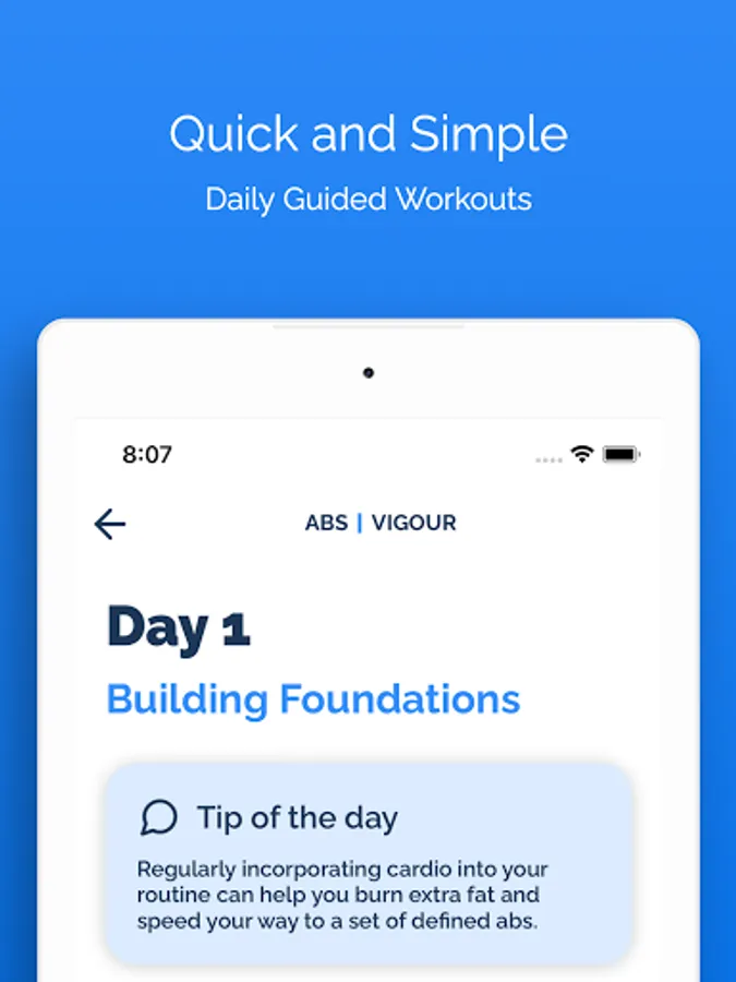Each plan is built to help your body adapt and improve while minimising risk of injury or burn out. Abs Trainer provides clear and easy-to-follow workouts to challenge all ability levels. Start today and take control of your body.