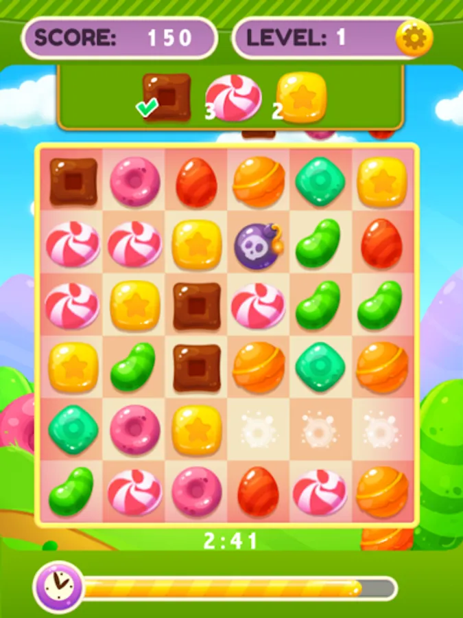 ⭐ Blast through entire rows and groups of candy items.