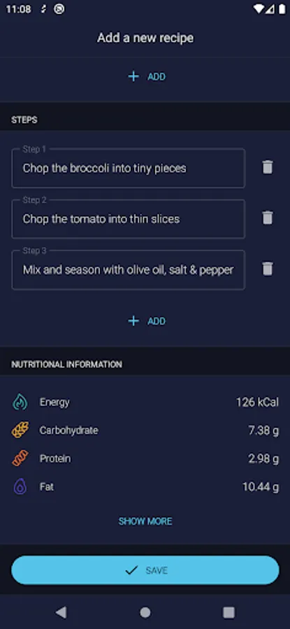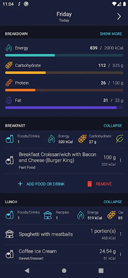 - Recipes manager: create and save your recipes for every day use, when logging a meal you can pick a recipe just as easily as you pick a food, that saves a lot of time doesn't it?
