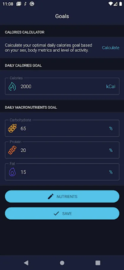 - Goals calculator: not sure what you should aim for? We have a calculator integrated in Food Diary that will tell you what is best for you, depending on your body and desired results.