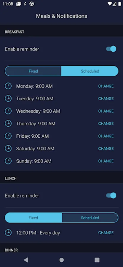Never worry about forgetting to log a day! Food Diary includes a reminder feature with notifications for each meal, helping you to never forget to log a meal again. You can even schedule your reminders at different times every day of the week, perfect for the modern busy life.