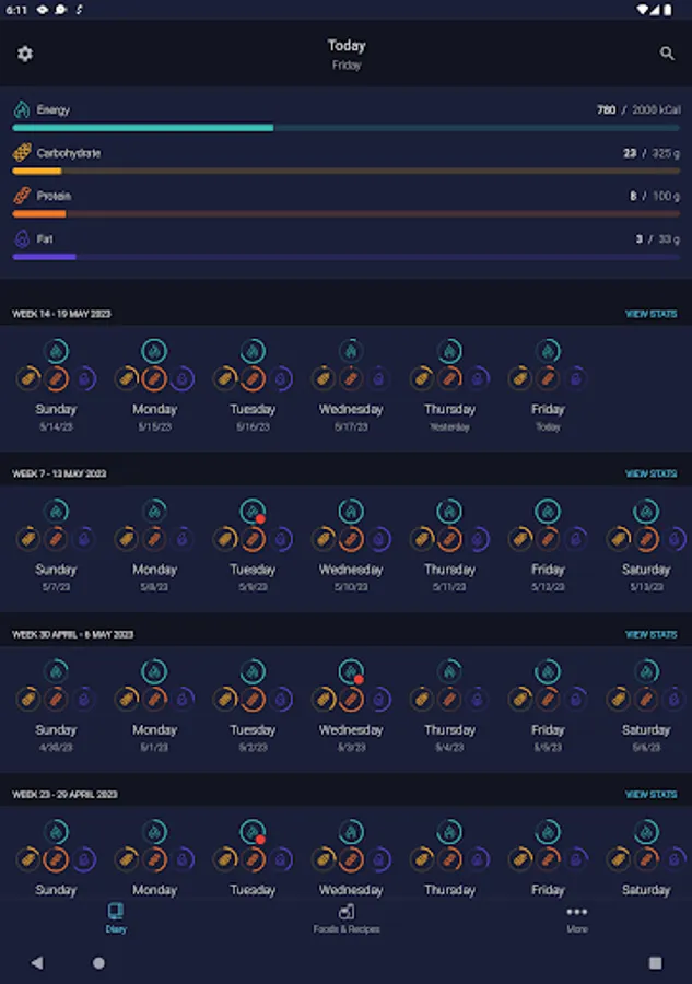 Food Diary allows you to set daily goals, including calorie and nutrient targets, so you can stay on track with your diet, a simple and intuitive chart system helps you keep track of everything in a quick and easy way. Whether you're trying to lose weight, gain muscle, or simply maintain a healthy lifestyle, Food Diary is the perfect companion.