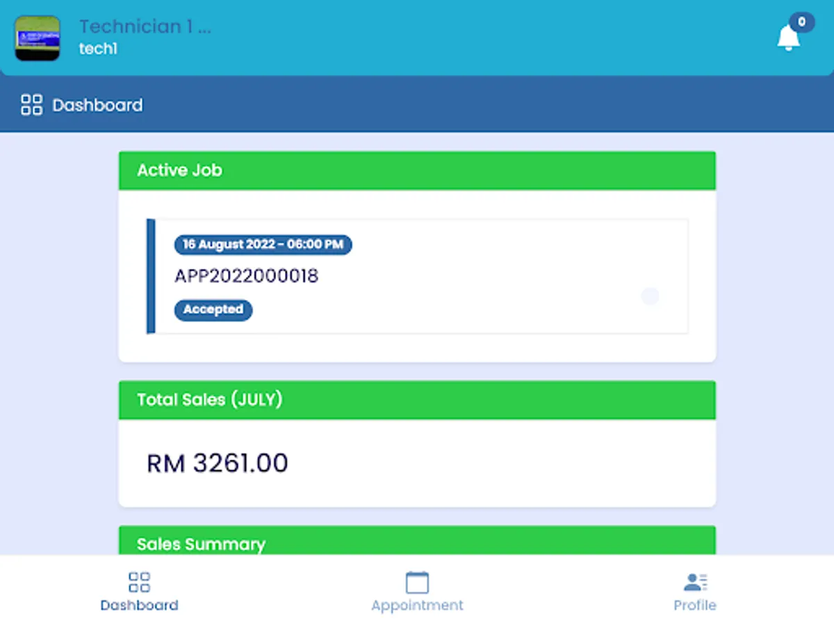 It is simply designed for technicians to update their appointments. Every technician can track the appointments assigned to them swiftly as well as their sales. Every process will be made easier with this app.