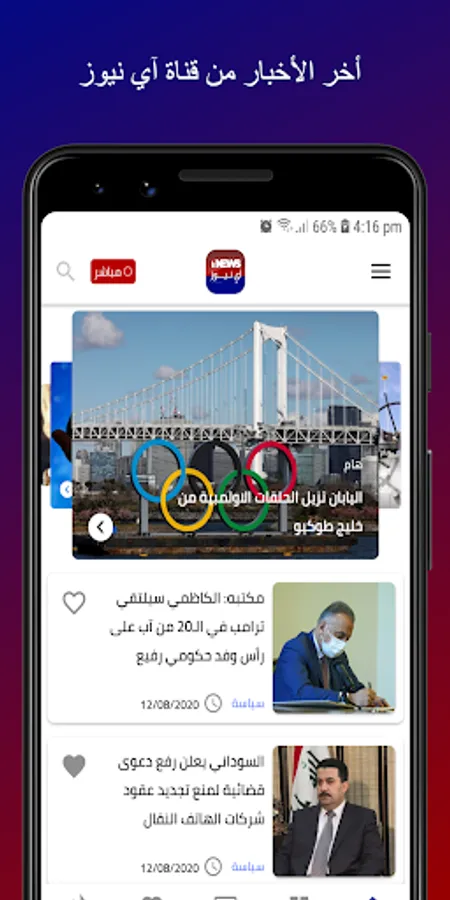 Stay in touch with the latest news from all over the world.. Watch the live broadcast of the "i-News" channel, to catch up on your favorite programs... You can browse the different i-NEWS content and its various content through one application.