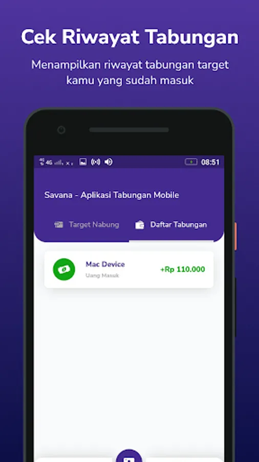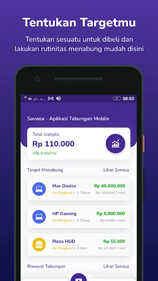 Savana is a mobile-based savings application that users use to record their target needs to be purchased with savings. Users will enter their daily savings routine data from the target they want to achieve based on the nominal suggested by this application.