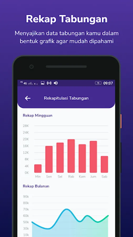 - Savings Recap - Present graphs of savings data that enter within a week and a month