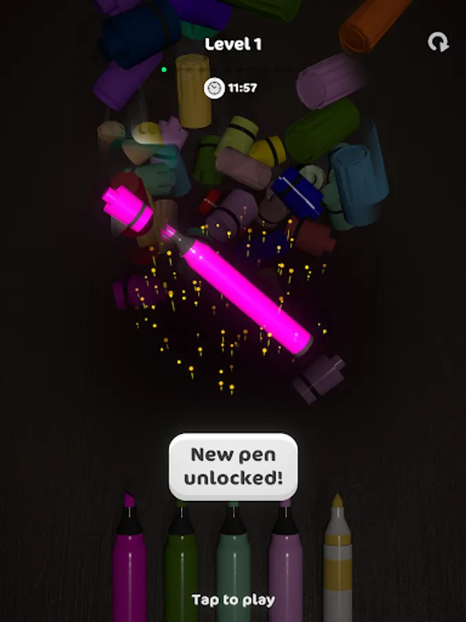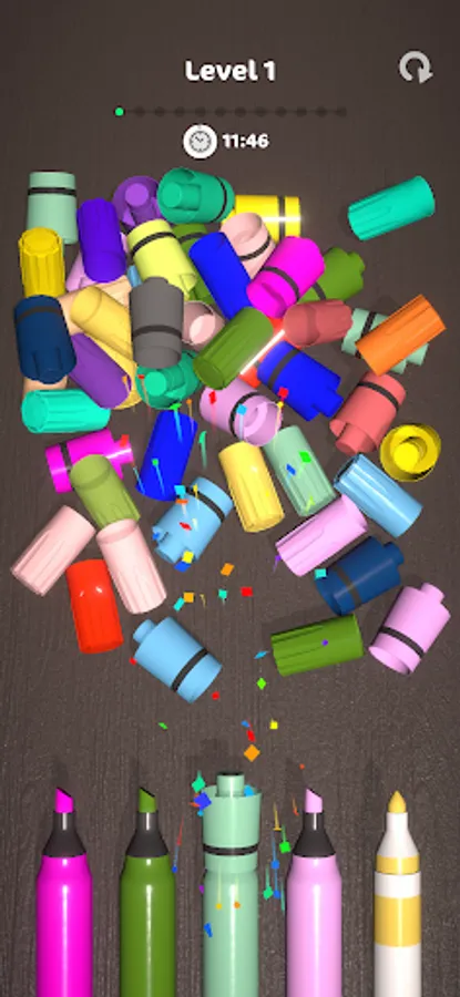 It's so satisfying! The pile of different caps becomes a perfect row of colored pens.