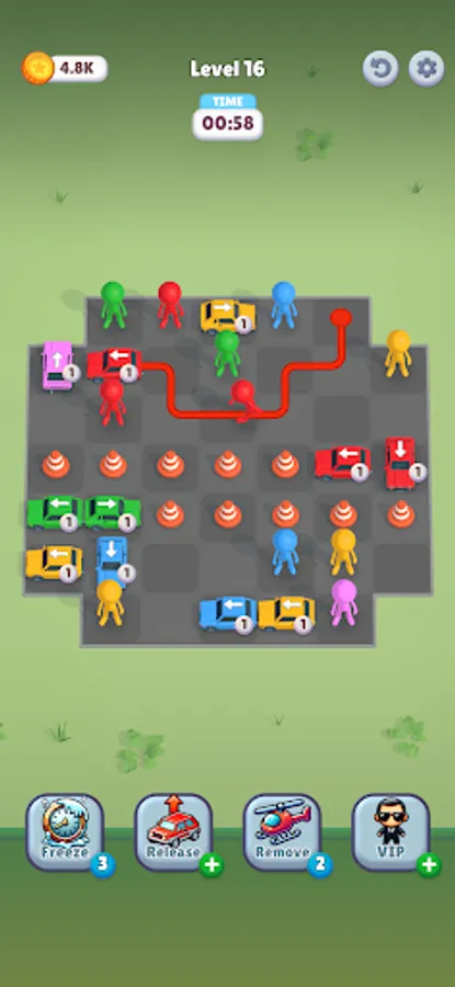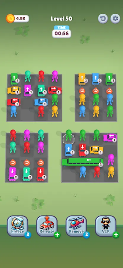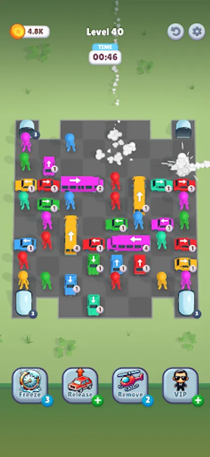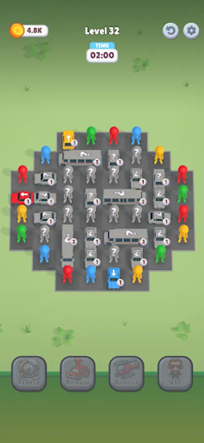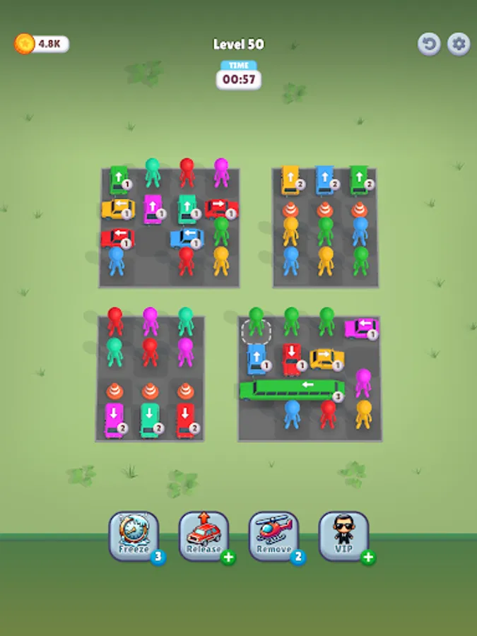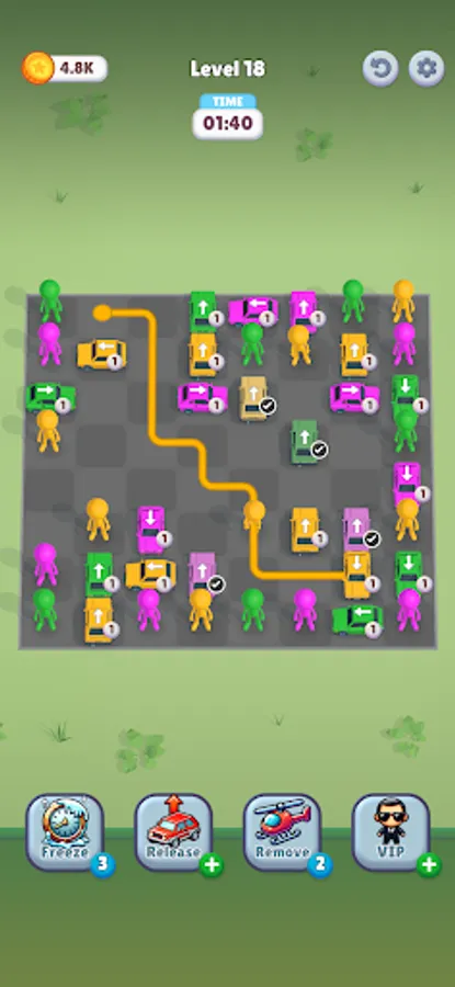 Your goal is simple: match drivers to their cars by color. Tap a driver, then tap their car, and watch them navigate the crowd... provided the path is clear! But getting them in is just the start. Once a driver is seated, the car prepares to leave! However, cars can only drive straight forward, and they won't move an inch if anything blocks their exit path.