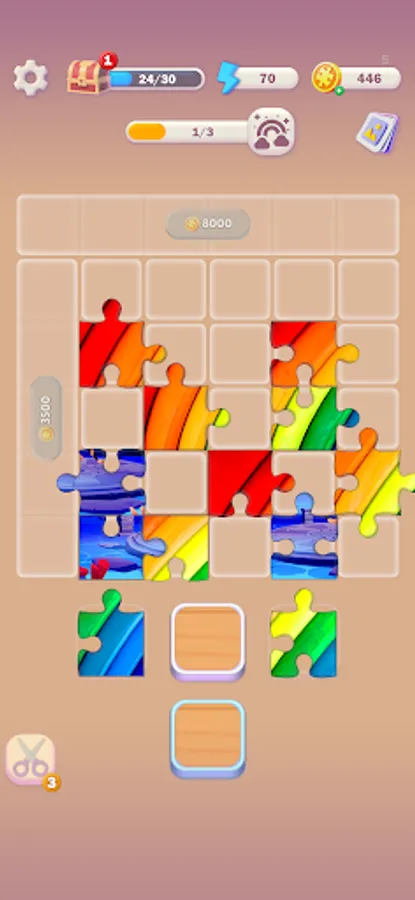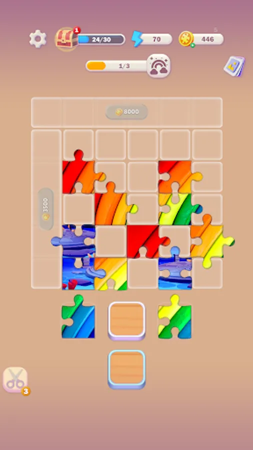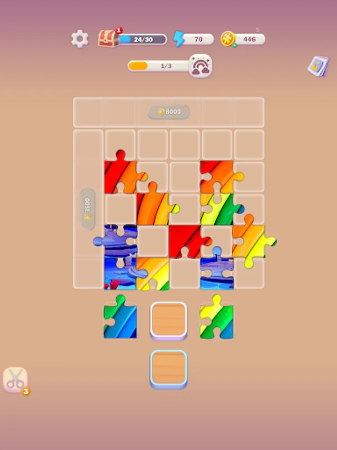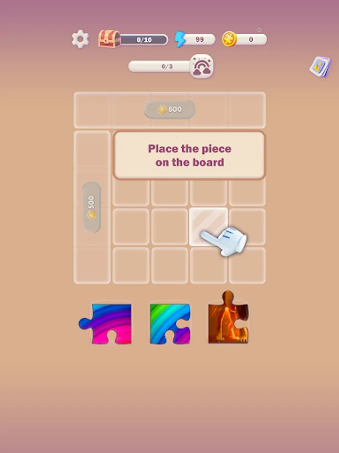 The gameplay is simple: you must place the puzzle pieces on a board to complete two pictures simultaneously. As you progress through the game, you will unlock new cells on the board, allowing for larger and more complex pictures to be completed.