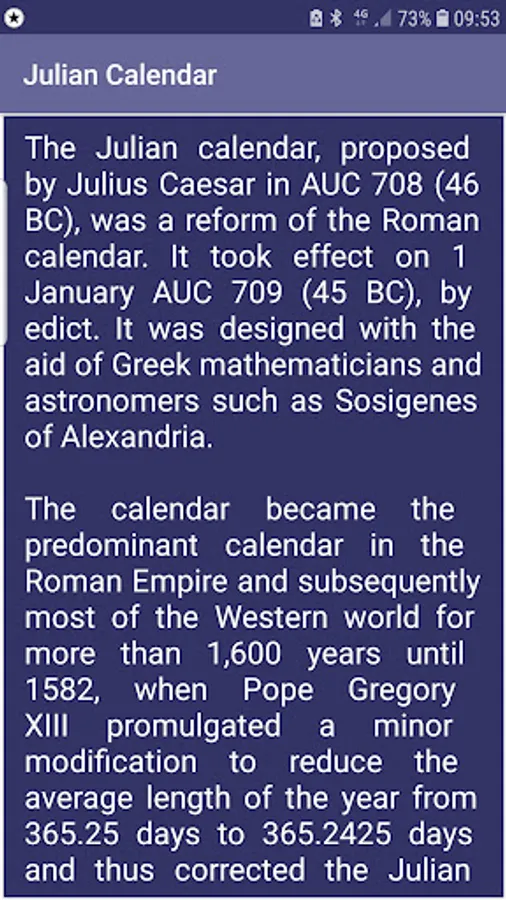 The Julian calendar, proposed by Julius Caesar in AUC 708 (46 BC), was a reform of the Roman calendar. It took effect on 1 January AUC 709 (45 BC), by edict. It was designed with the aid of Greek mathematicians and astronomers such as Sosigenes of Alexandria.