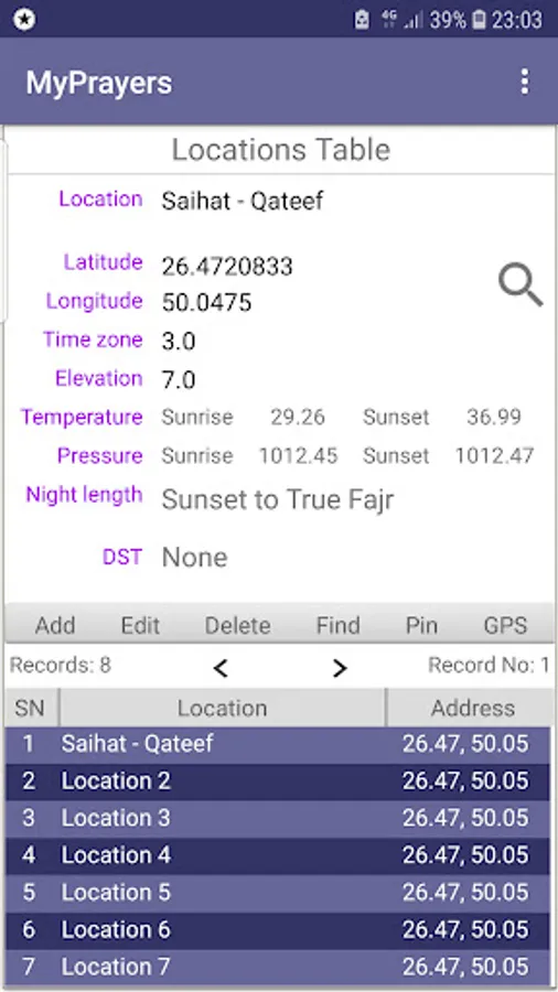 You can add multiple sites and choose from them as a default location without permanent need to search for coordinates via GPS or internet connectivity. MyPrayers app also enables you to fully control addition, modification, deletion, and search for location coordinates.