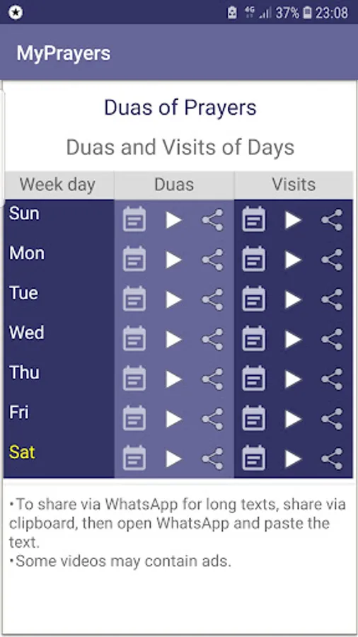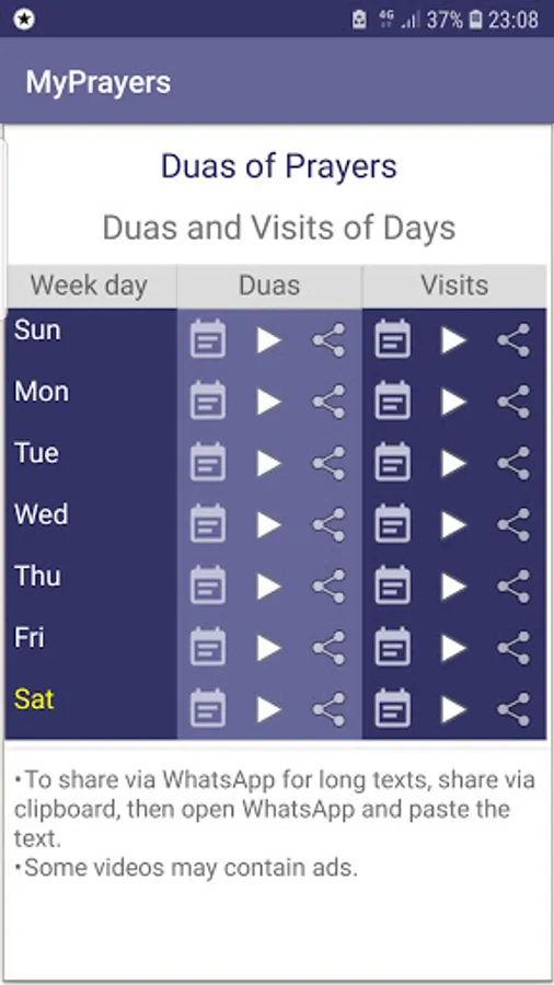 • Addition of duas and visits of days.